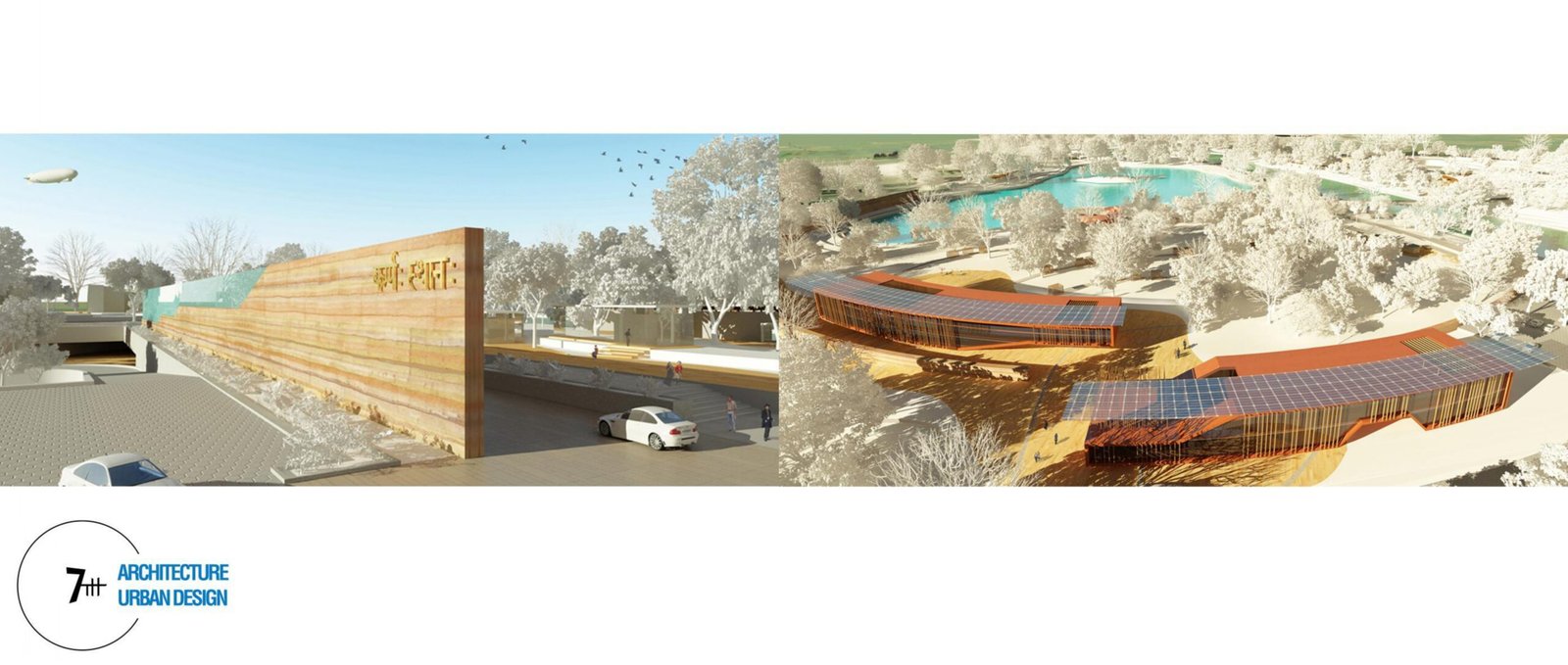Most of the land procured by the government is on the lake side while a small patch is across the highway. 7th proposed using it as a sunken courtyard for the vehicles to go under and enter the main plot in a comfortable elegant way. This omits the use of any traffic light or disruption from any of the directions visiting the venue. Apart from the circulation a set of shops and maintenance features related to mechanical, entertainment purposes were proposed.