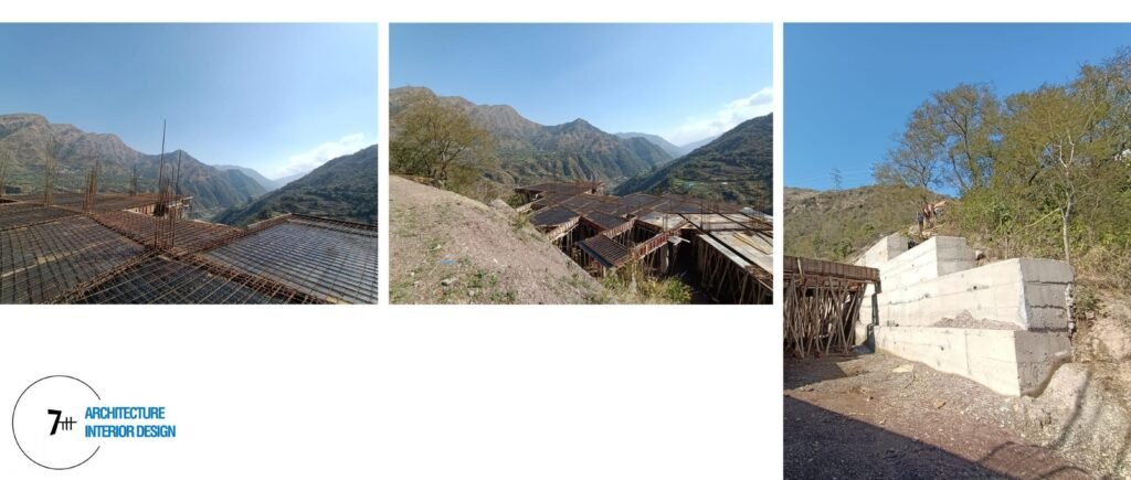 The site located in the valleys of the Sirmour region is at the edge of the village called Chunner, the village is itself walking distance and the right proximity to give the property a sense of isolation and connectedness. The road had to be carved from the main highway upto the site for which the contours slope down and present a breathtaking view of the valley below and the River Rukmani flowing. It takes a slight attention to her waters rumble below in the daytime while in the evenings it is fairly perceptible. The site is situated at the edge of the workable contours of the mountain and presents a spectacular view of not just the river but of the valleys stretching in the distance.