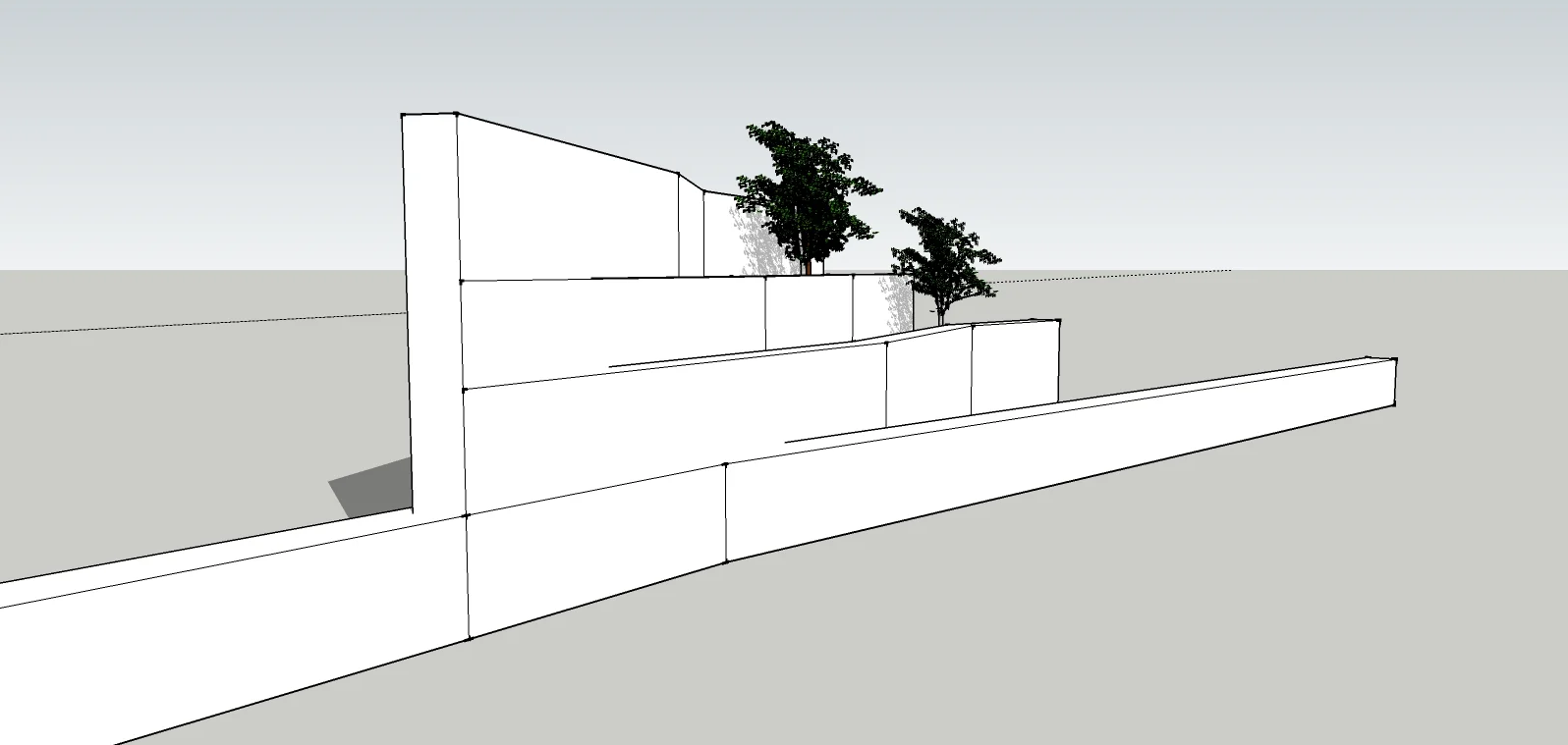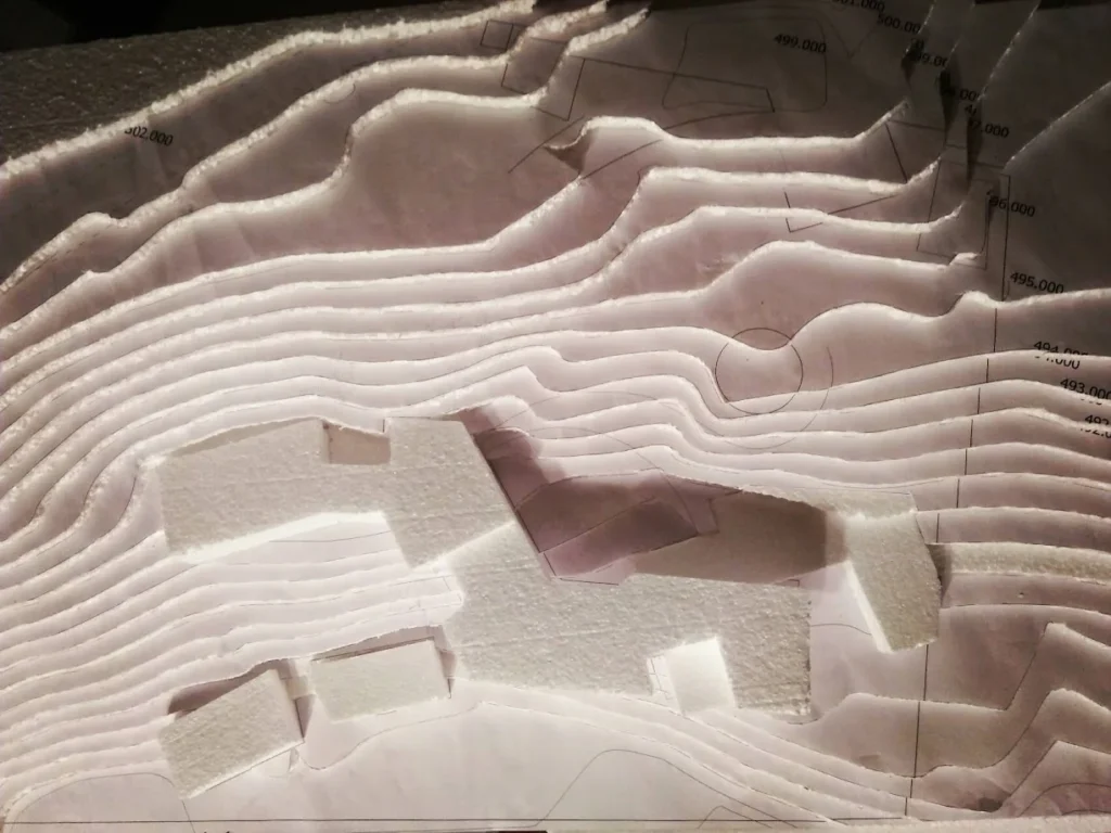 The retaining walls proposed were a spectacular fan assembly dividing the height in smaller manageable divisions, the existing one which was somewhat of a compromise owing to the challenges faced with the execution agencies, however there a considerable area which is part of the landscape between the retaining wall and the home-stay making it an ideal spillover zone. The underbelly of the overhead floor has been left vacant for the landscape to be included and making the architecture form more integrated with the landscape.